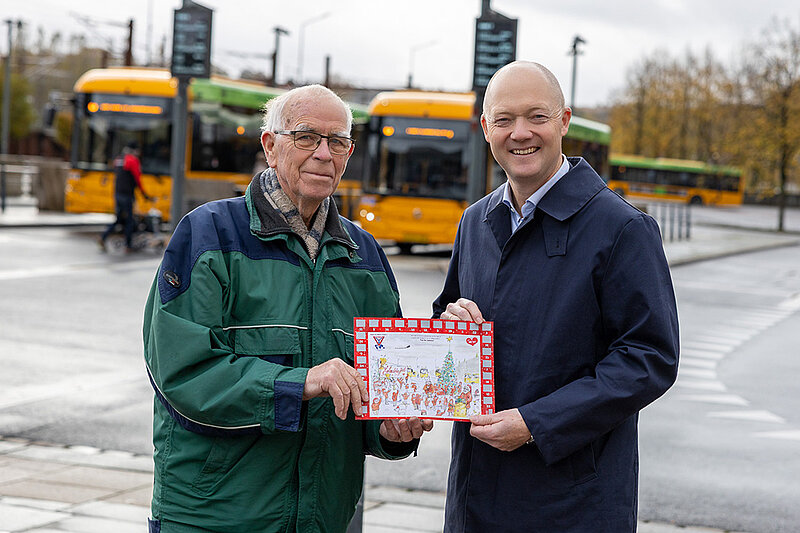 Det er Hans Suhr fra Jelling, som har tegnet forsiden til julekalenderen 2025. I år har kalenderen et velkendt Vejle-motiv fra Vejle Trafikcenter. Det er nisserne, som på en festlig og idérig måde sætter gang i julestemningen i det sneklædte trafikområde.